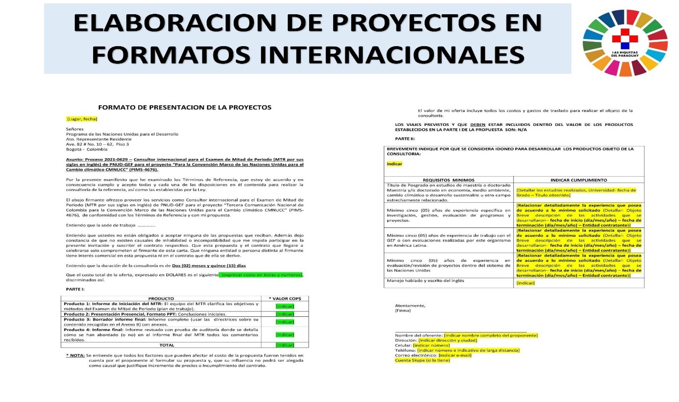 7. PRESENTACIÓN DEL PROYECTO EN FORMATOS INTERNACIONALES PARA SU FINANCIAMIENTO